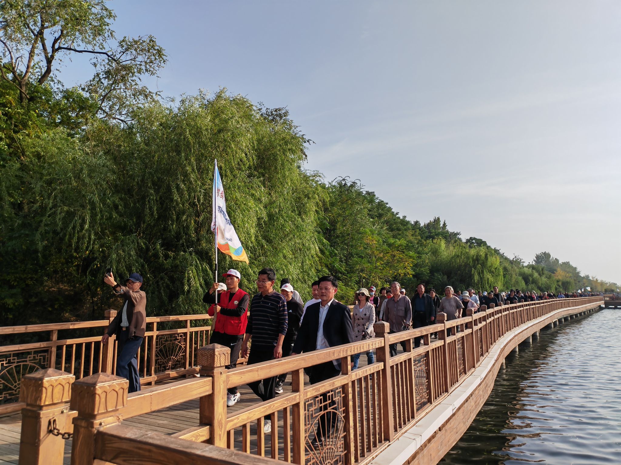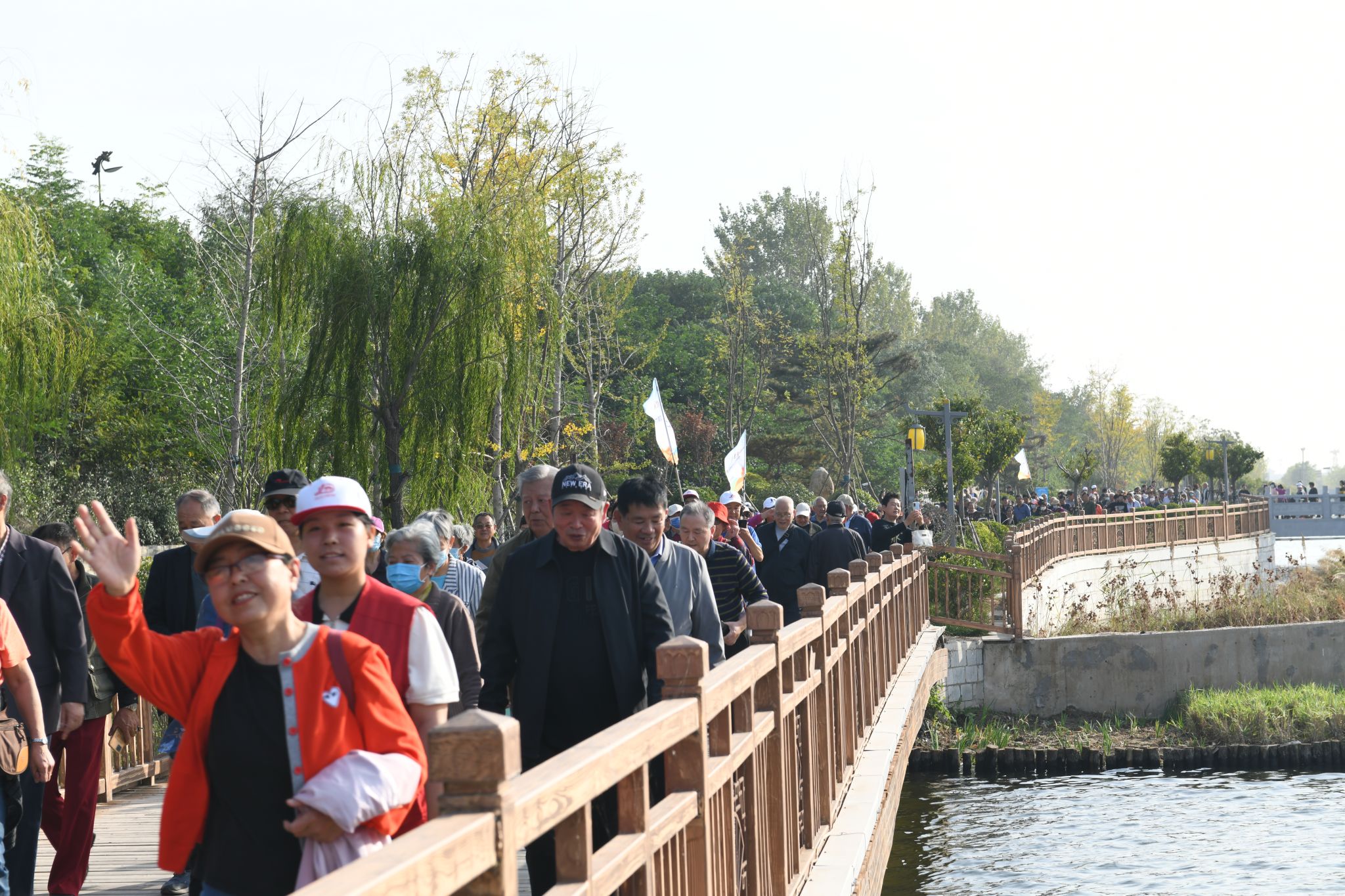 此次活动共有1300余名离退休教职工参加,以大礼堂广场为起点,通过铁塔湖栈道进入铁塔公园,从铁塔公园北门返回学校,全程共2.5公里。