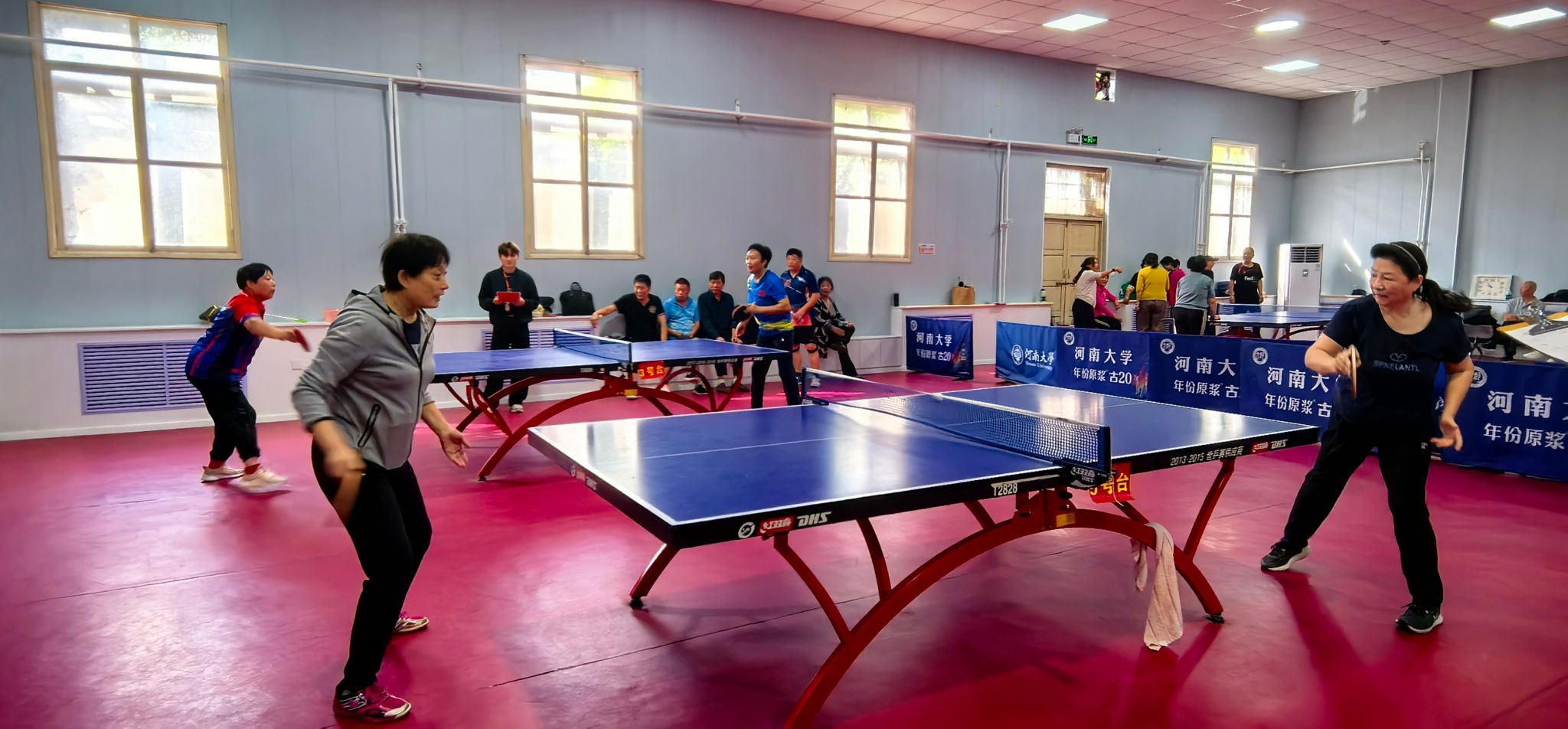 为热烈庆祝“中国人民抗日战争暨世界反法西斯战争胜利80周年”,丰富我校离退休教职工文化生活,9月29日上午,由河南大学离退休工作处主办、离退休教职工乒乓球协会承办的“河南大学首届老年乒乓球团体赛”,在校工会教职工活动中心顺利开赛。离退休工作处副处长李世平、梁丽出席比赛开幕式,河南大学离退休教职工乒乓球协会会长王勇主持开幕式,总裁判长易春燕现场宣读比赛规则。本次赛事全校共有10支代表队、50余名离退休教职工参与,以球会友、共展银龄风采。
