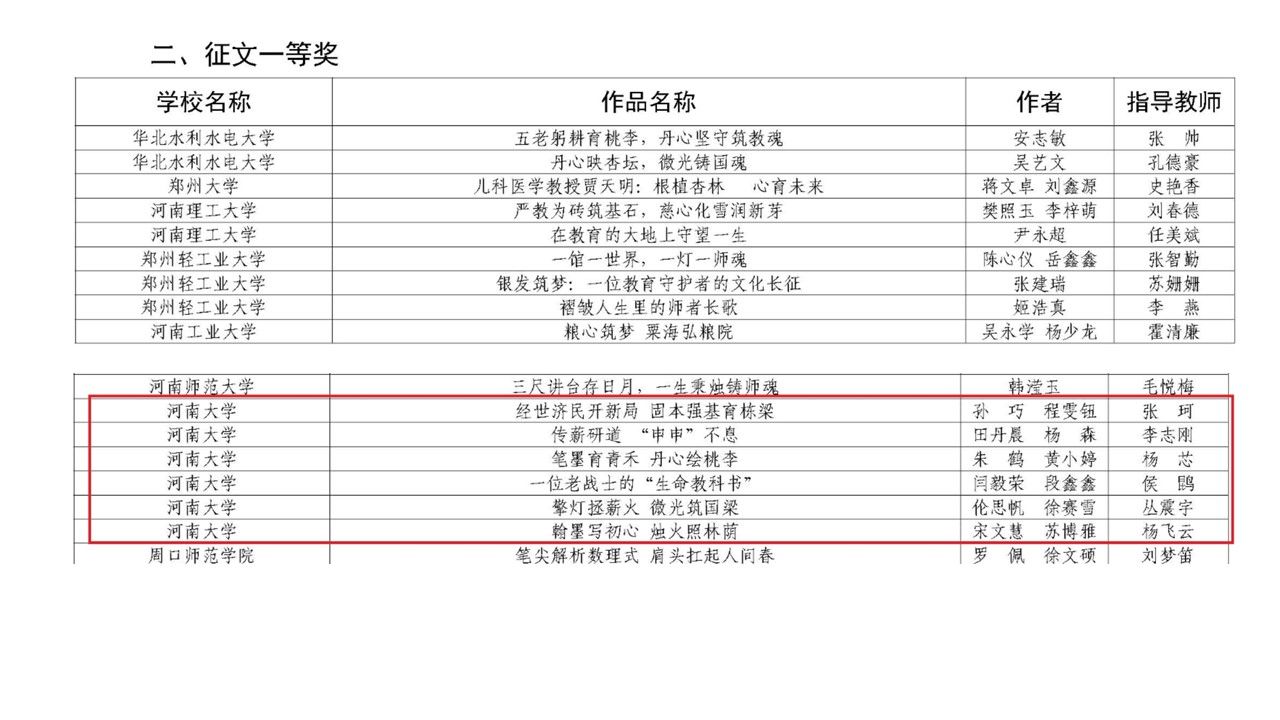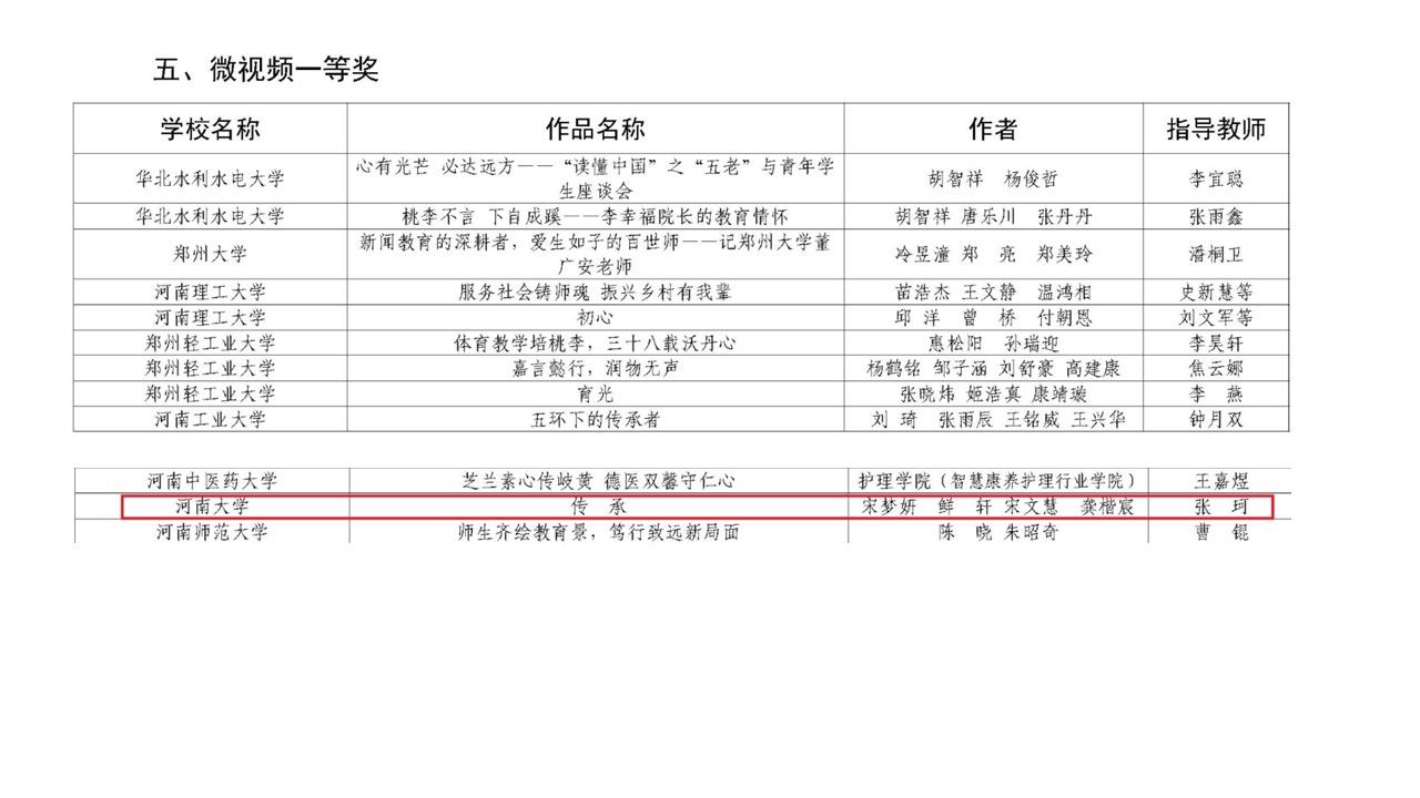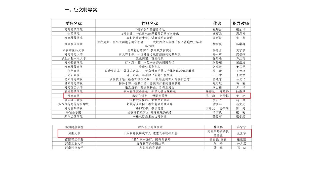 近日,教育部关工委、河南省教育厅关工委相继公布2025年“读懂中国”活动评选结果,我校选送的征文与微视频作品在省级评选中获多项荣誉——征文类作品获得特等奖2部、一等奖6部,微视频类作品获得特等奖6部、一等奖1部。凭借优异的组织成效与作品质量,我校获得教育部关工委、河南省教育厅关工委的表扬。