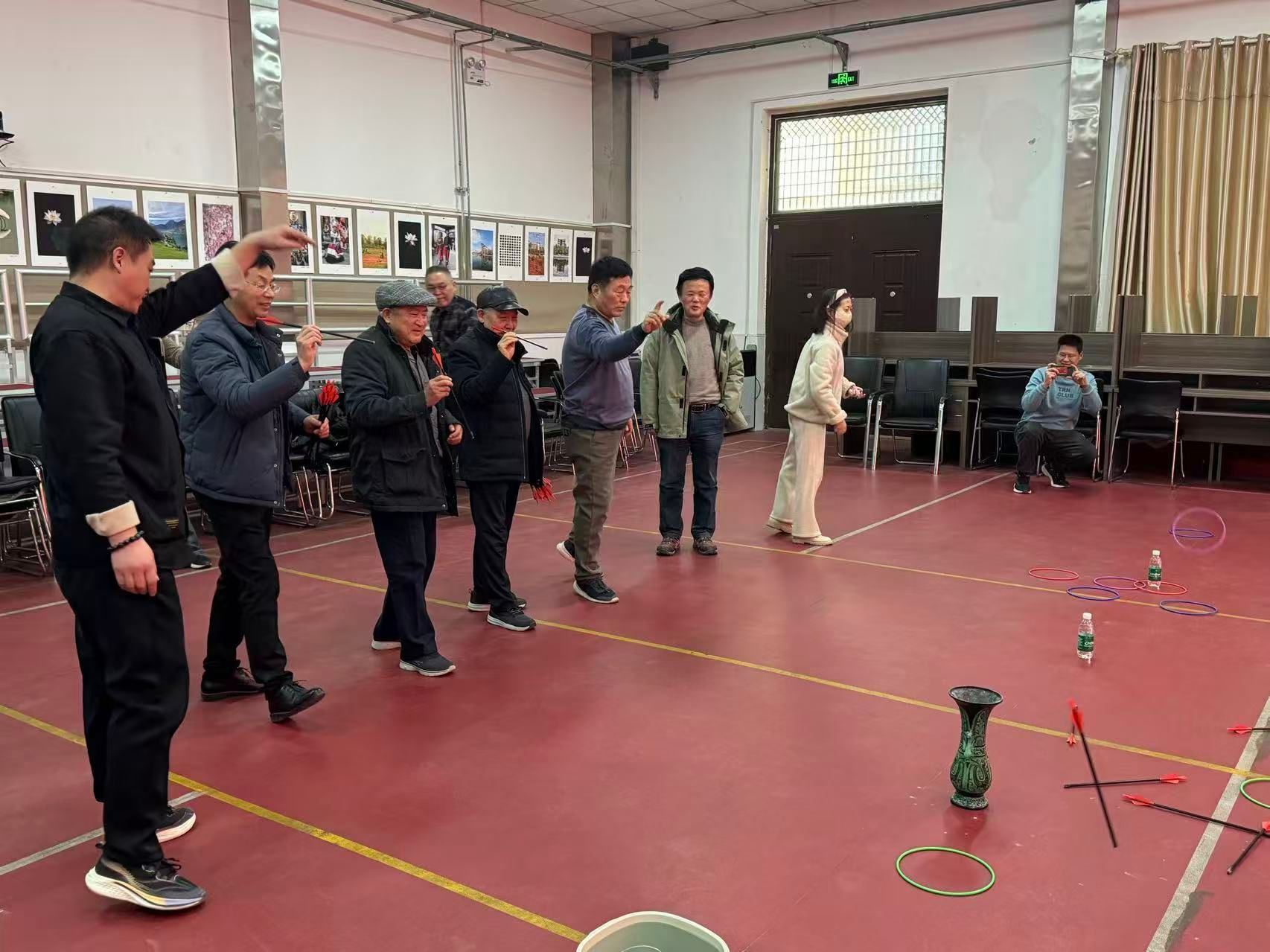 座谈会后,新春娱乐活动在室内活动场地热闹开启。投壶游戏前,老同志们凝神聚力、瞄准投掷,不时为彼此的精准命中喝彩;棋牌桌旁,大家围坐一堂,在象棋对弈、双升比拼中切磋技艺、畅谈家常,现场欢声笑语不断,氛围轻松而热烈。各类趣味活动既丰富了老同志们的精神文化生活,更让大家在互动中增进了情谊,感受到了浓浓的新春暖意。