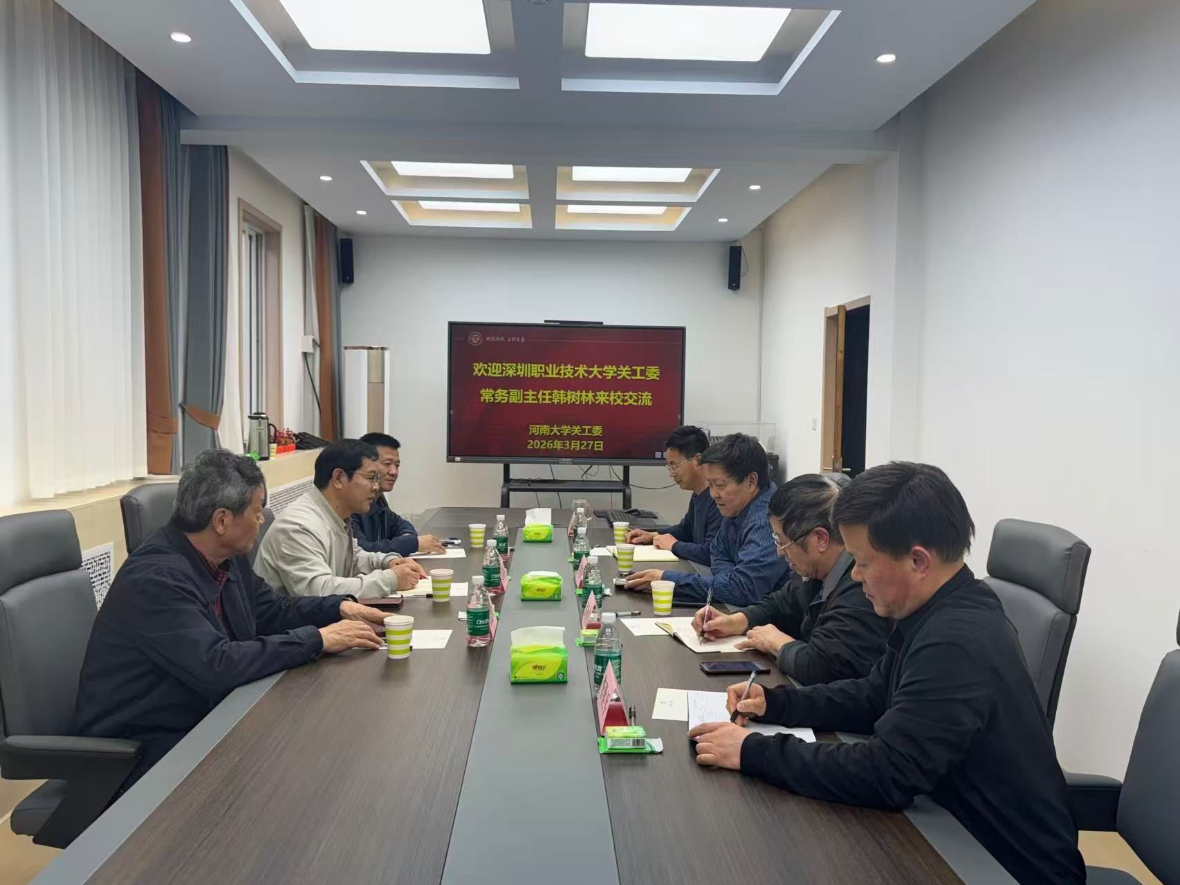 为推动新时代关心下一代工作有序进行,3月27日,深圳职业技术大学关工委常务副主任韩树林一行莅临我校,在离退休工作处二楼会议室召开座谈会。会议由离退休党委书记、离退休工作处处长牛林豪主持,校关工委副主任许俊峰、副秘书长武业伟及离退休工作处的相关同志参加。