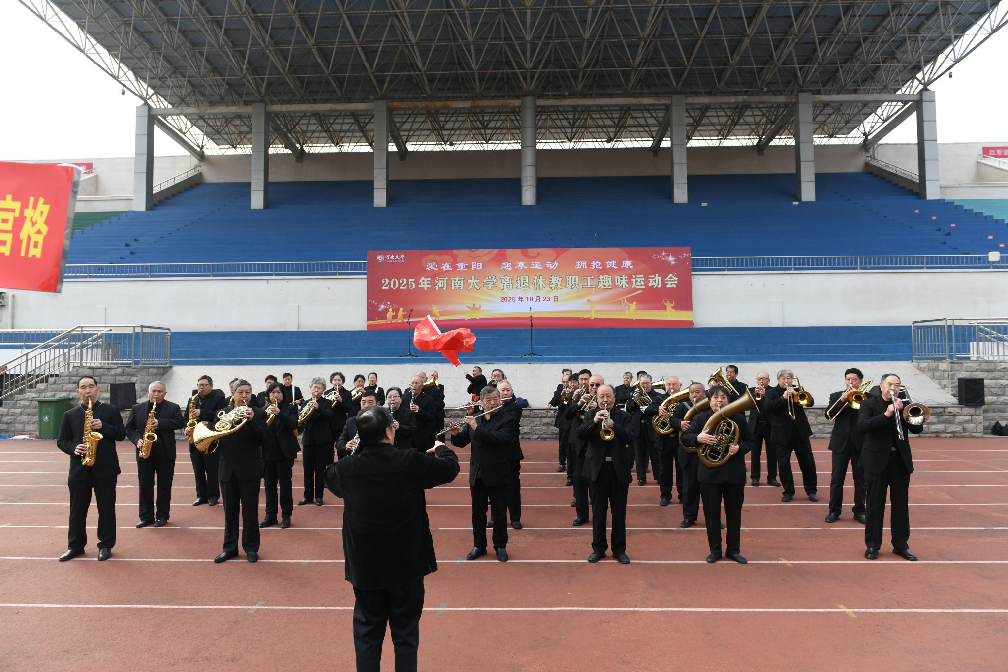 随后,在我校老干部管乐团激情奏响的《歌唱祖国》《没有共产党就没有新中国》的嘹亮旋律中,牛林豪宣布河南大学2025年离退休教职工趣味运动会正式开幕。
