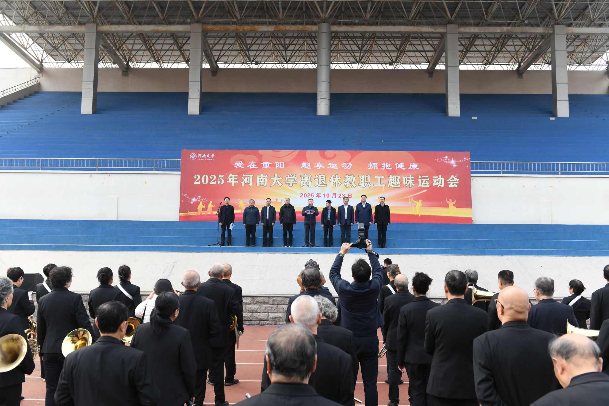 金秋送爽,丹桂飘香;百年河大,情暖重阳。10月23日下午,金明校区志义体育场上乐曲昂扬,人头攒动,洋溢着欢乐祥和的气氛,河南大学2025年离退休教职工趣味运动会在此举行。校党委副书记李平,相关职能部门负责人出席开幕式。开幕式由离退休党委书记、离退休工作处处长牛林豪主持。